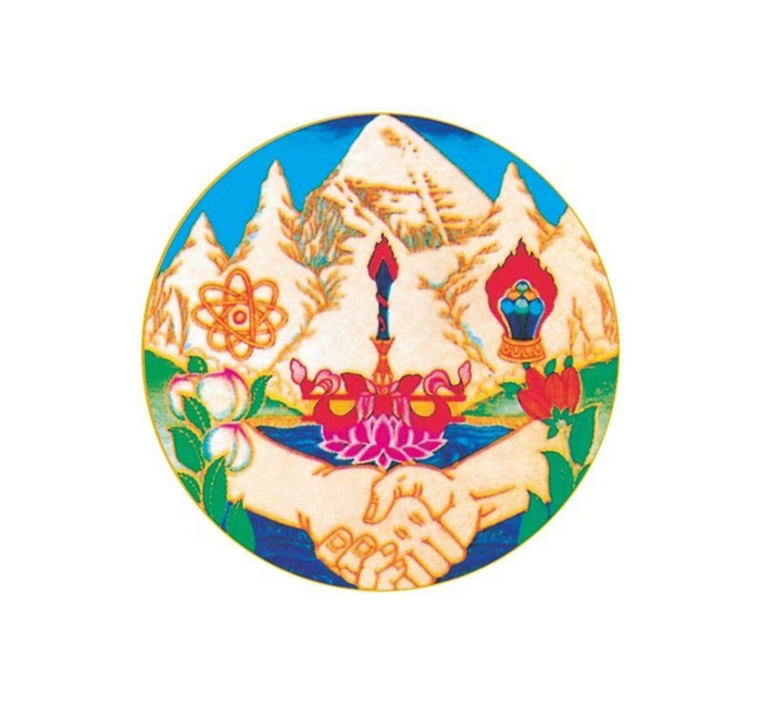 十世班禪大師是個雷厲風行的人,著手安排落實基金會的籌備工作之初,大師就首先設計了援藏基金會的徽標,并請畫家洛松向秋付諸筆端:雪山象征地球第三極的世界屋脊雪域高原,寶劍象征藏族人民的勤勞勇敢和智慧,握手象征民族大團結,科技符號象征建設現代化的新西藏,火炬象征西藏文化傳承、經濟騰飛,兩側橄欖枝象征平安祥和。