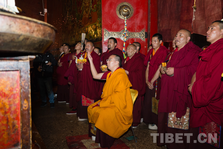 圖為2020年9月16日,班禪在扎什倫布寺強巴佛殿祈福 攝影:鄭朔