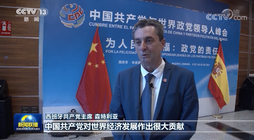西班牙共產黨主席 森特利亞:中國共產黨對世界經濟發(fā)展作出很大貢獻,展現了科學社會主義的實踐,為其他國家提供了借鑒經驗,是在造福全人類。