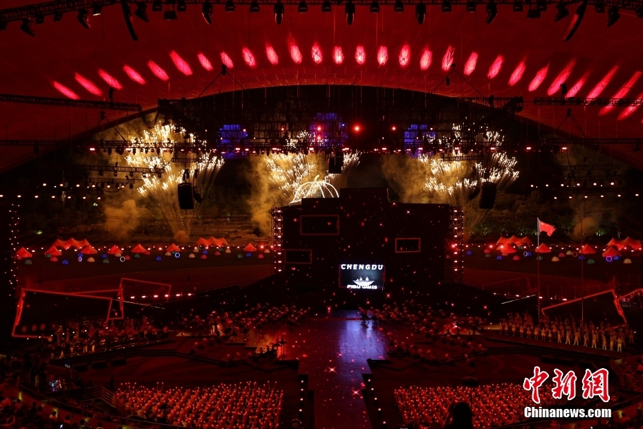 8月8日,第31屆世界大學生夏季運動會閉幕式在成都露天音樂公園舉行。圖為現(xiàn)場焰火表演。